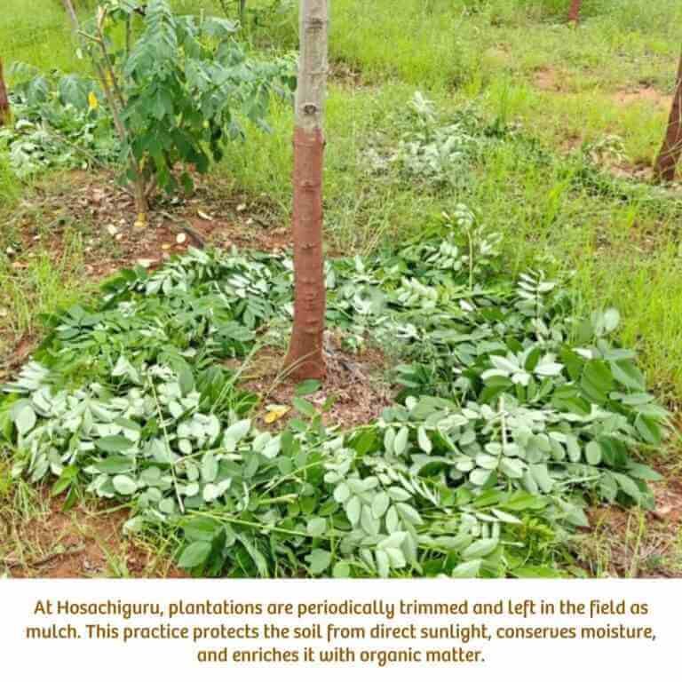 At Hosachiguru’s managed farmlands, these principles come to life. Practices such as using natural astras, intercropping, planting diverse native trees, and conserving water through swales and watersheds embody our commitment to ecological harmony. By adopting Fukuoka’s approach, we focus on enhancing soil health, reducing dependency on external inputs, and creating self-sustaining ecosystems.